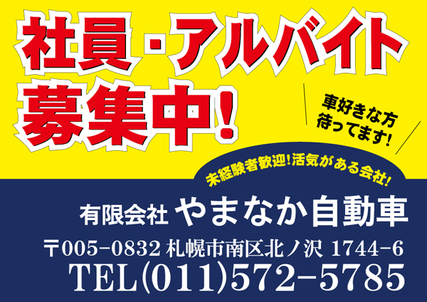 有限会社やまなか自動車は、札幌市南区に位置し藻岩山と豊平川の清らかな環境の恵みの中で「自動車の修理業」を営む技術者集団です。